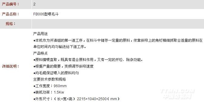 您所在的位置:紡機網 > 產品庫 > FB006型喂毛斗