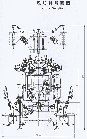 主傳動通過主軸,傳動直徑ф204毫米的滾盤帶動錠子運轉,中墻板采用框式結構,E型龍筋,角尺型機梁,緊湊穩固,機架重心低,剛性好。