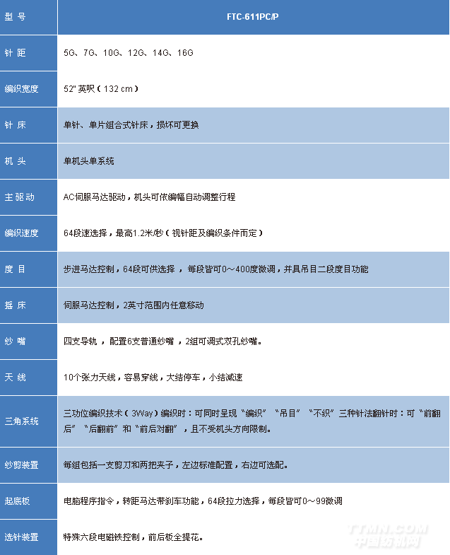 單機(jī)頭單系統(tǒng),起底板(可選)機(jī)型,該系列采用數(shù)字化技術(shù)實(shí)現(xiàn)橫機(jī)的翻針、吊目、挑孔、無(wú)虛線嵌花、提花、放針、明收針、暗收針及其他規(guī)則花型編織功能,可編織基本針織組織(四平、坑條、單面等),多色無(wú)規(guī)則提花組織、嵌花組織,絞花組織、阿蘭花組織、挑孔組織等緯編組織。增加起底板剎車功能,起底動(dòng)作精確、穩(wěn)定,有效的減少紗線的浪費(fèi),提高生產(chǎn)效率。