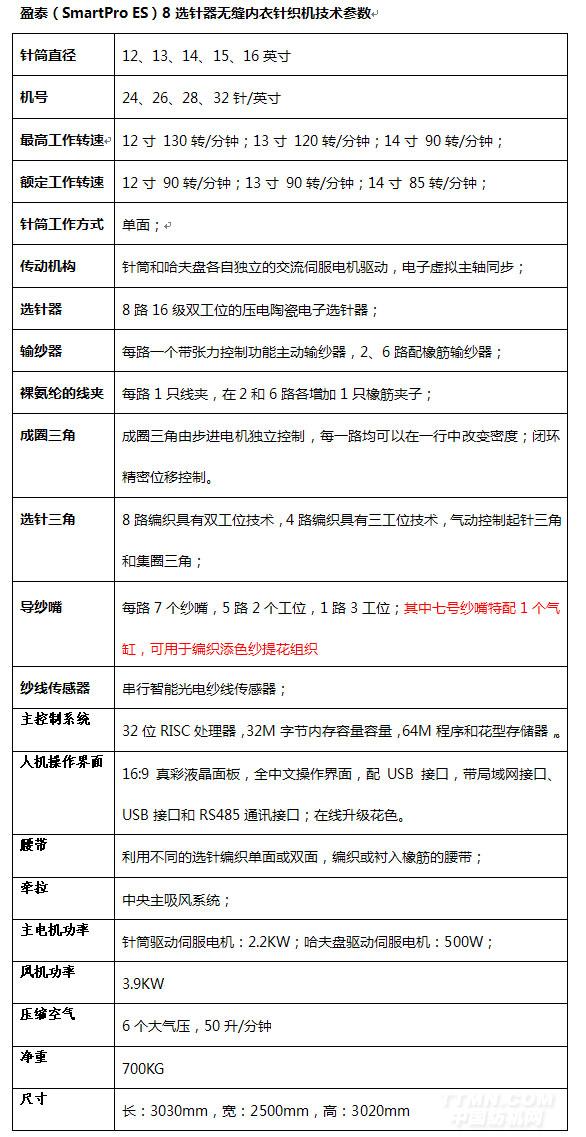 適宜穩(wěn)定、高效大批量生產(chǎn)的盈泰(SmartPro ES)8選針器無(wú)縫內(nèi)衣針 織機(jī)