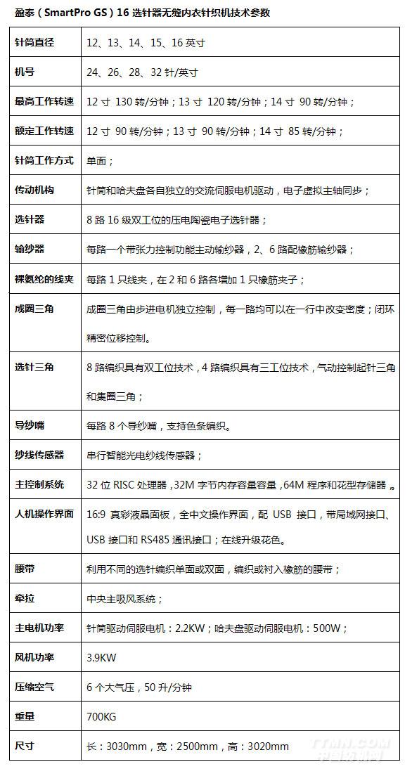 適宜多色彩、多組織的盈泰(SmartPro GS)16選針器無(wú)縫內(nèi)衣針織機(jī)