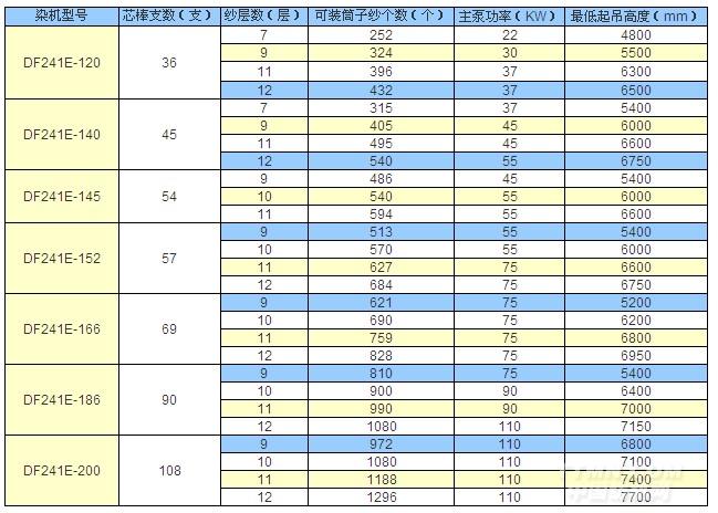 DF241E高溫高壓染色機,適合染:純棉、滌棉、滌綸、晴綸、錦綸、毛滌、麻棉等各種混紡紗線。配置不同的紗架,可染不同形式的纖維,如筒子紗、絞紗、散毛、拉鏈等。
