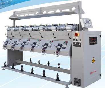 經久耐用的電腦控制緊式絡筒機,用于生產錐型的緊式筒子紗,供針織機、梭織機、整經機、織襪機上使用。機器的卷繞速度可通過電腦自動控制,最高可達1100米/分鐘。徑向防疊裝置調控方便。先進的清紗及張力機構配以光電探紗可避免紗線打結纏繞。精確而靈敏的測速裝置可保證卷繞長度(重量)均勻一致。電動旋轉上蠟器可滿足紗線上蠟量以及均勻性。是棉、麻、絲和化學纖維類紗線倒筒、分筒的理想設備。