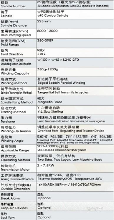 本設備適用于滌綸長絲進行倍捻,定型(預縮)、加捻的一步法加工,生產的縐絲用作滌綸仿真絲織物的原料。