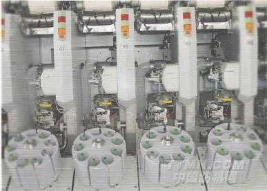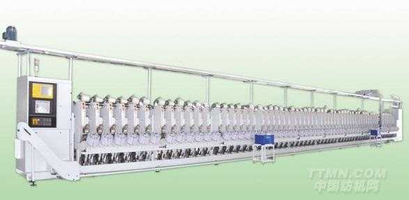 該公司展出了 60 錠 DTM439 型自動絡筒機 1 臺是第二次全機展出。與上屆相比變化不大。技術特點主要有:槽筒采用無刷直流電機直接驅動;采用傳感技術、結合計算機控制,實現對筒紗吸嘴吸頭動作和時間的控制,有效減少回絲;采用高效風機,并應用變速技術和計算機技術,使風機在待機狀態保持低速運行,降低能耗。