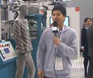工程師:我是來自于圣東尼的開發部,這款機器是SM8-TOP2 MP2,我們做的產品是一種添紗的產品,因為我們的產品是一個新的剪牌,可以更容易的剪線,而且高速更容易的做些提花,也可以做不同的結構,另一款是SM6-RIB2,這款機器可以做下擺螺紋,可以做不的結構.
