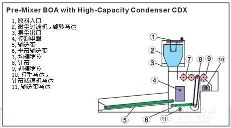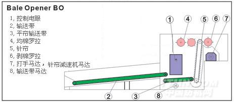 適用于小批量,并可節省占地面積為一相當經濟性的喂棉設備。本機當搭配A3000作為預混機使用,可依照場地及用途,配備不同長度輸出帶。 工作寬度由1000-1500mm,依照產量有多種選擇,BO系列產品均可連結開棉機或清棉機使用。紡紗過程中所產生的回條, 回線可本機設定一比例,用于生產線中。