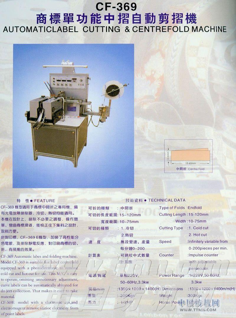 CF-369商標(biāo)單功能中摺自動(dòng)剪摺機(jī) -- 臺(tái)灣優(yōu)耀企業(yè)有限公司