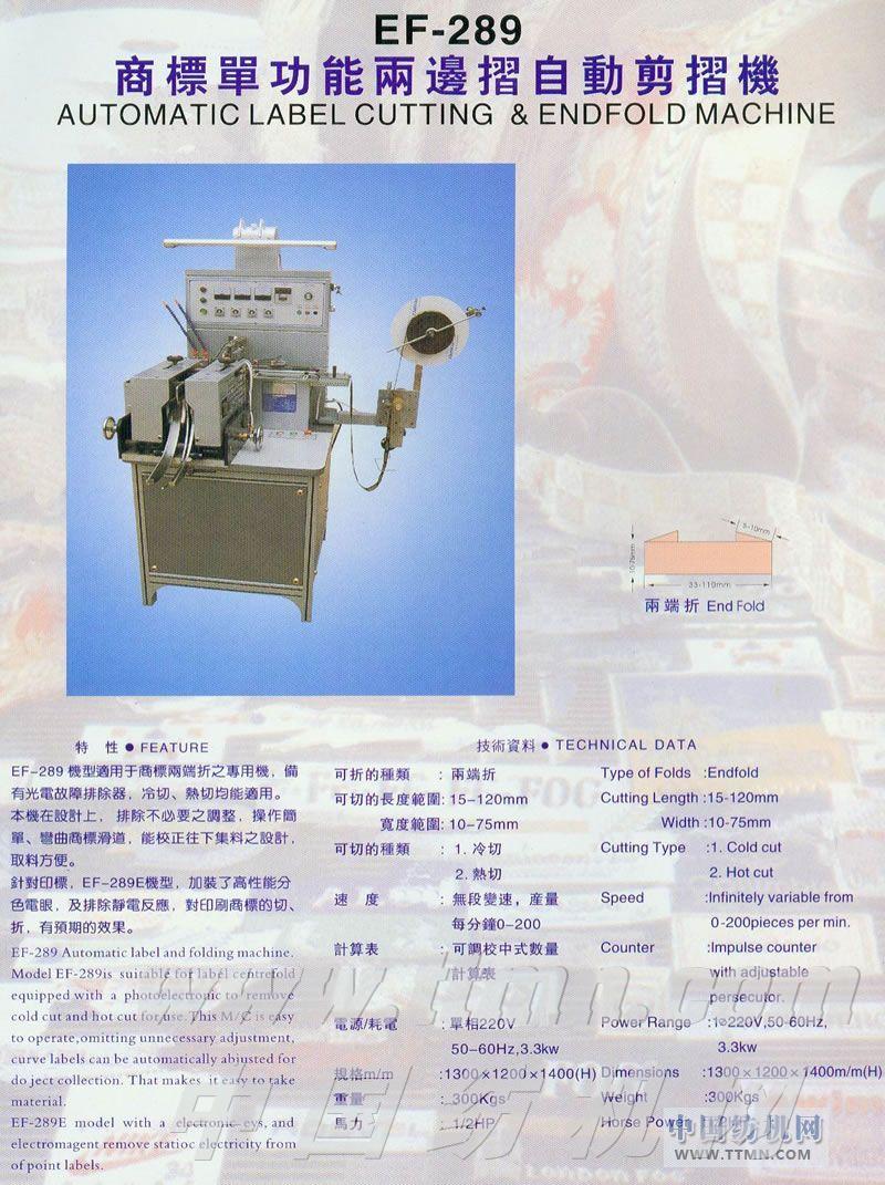 EF-289商標單功能兩邊摺自動剪摺機 -- 臺灣優耀企業有限公司