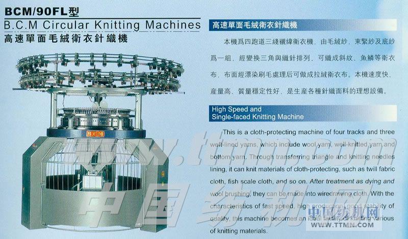 BCM/90FL型高速單面毛絨衛(wèi)衣針織機 -- 臺灣榕煙臺關(guān)系企業(yè)
