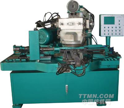 該機床采用強力磨削原理對螺旋槽絲錐的溝槽一次磨削成形,具有除上下料手工外其他工件分度、工件進給、砂輪進給、砂輪修整、砂輪補償等功能均能自動完成。機床由一臺PC電腦控制機械、液壓的程序動作,并設有人機界面用戶可對PC的程序進行修改,具有良好的人機對話功能。該機床具有較高的效率,適用于大批量生產的廠家。