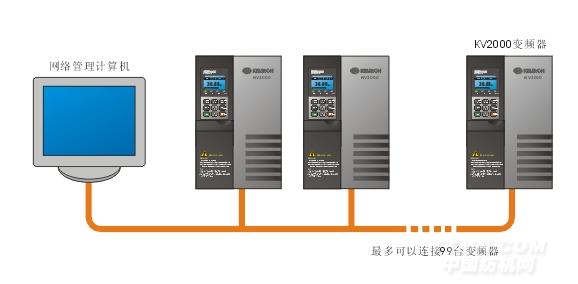 內(nèi)建RS-485標(biāo)準(zhǔn)通訊接口,可以讓單臺或多臺變頻器同時由主計算機做動態(tài)控制,并可以同時控制多達(dá)99臺變頻器(超過31臺變頻器時須加裝中繼放大器)。提供 KV protocol 或標(biāo)準(zhǔn)Modbusprotocol 等通訊協(xié)議。