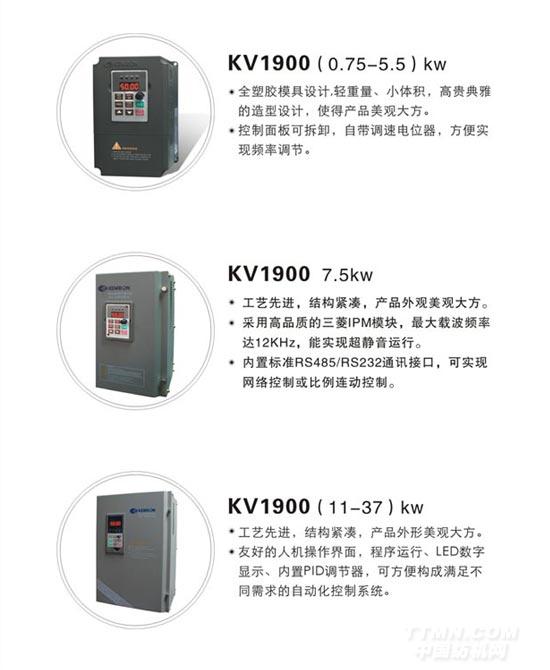 KV1900空間電流矢量變頻器用于從0.75KW至37KW的電機速度控制,廣泛用于傳送帶、擠出機、提升機及風機、泵類負載。從自身的產品到數控機床、紡織機械、印刷機械、石化機械和過程控制產品等工程項目,高精度控制及高效節能特性在冶金、制漿造紙、石化、空調制冷、供水、建材、印刷、及紡織等諸多領域都得到客戶普遍認可及好評。