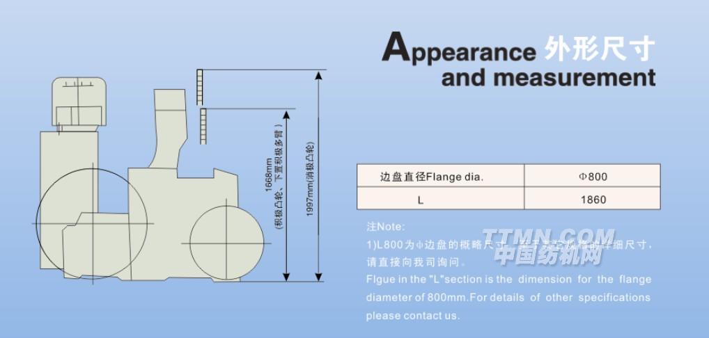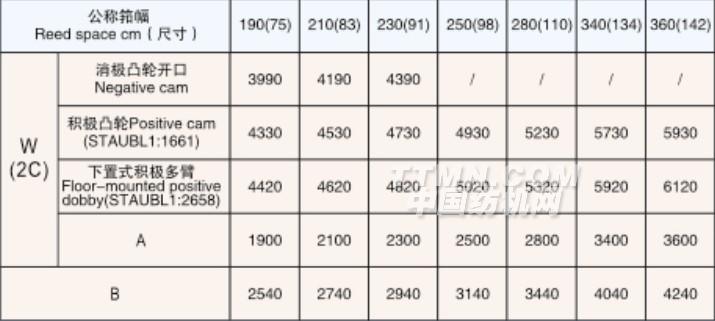性能指標(biāo):公稱筘幅為190-360cm(可根據(jù)用戶需求生產(chǎn)相應(yīng)的筘幅),上、下織軸盤片直徑φ800mm(或914mm)、主軸轉(zhuǎn)速400-750rpm(實(shí)際車速根據(jù)織物規(guī)格確定)、筘幅可調(diào)范圍0-800mm、適用織造長絲或短纖、卷布直徑550mm、上下織軸經(jīng)紗雙伺服控制、電子多臂開口(16片)、電子卷取(機(jī)械卷取)、10.4"觸摸液晶顯示智能電腦控制。