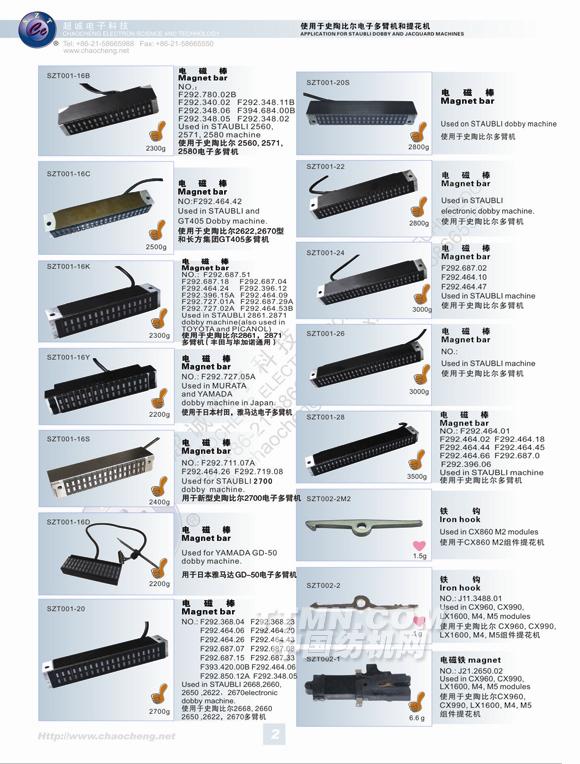 超誠電子科技有限公司在產品開發領域:成功研發出提花機電磁鐵、抬緯電磁鐵、電子多臂機電磁鐵、儲緯器電磁針、接近開關、緯紗傳感器、光電開關、光電探緯器、固態繼電器等產品,部分產品獲得了國際UL認證、CE認證等,受到了國部委的多次嘉獎。特別是本公司的高頻率提花機電磁鐵(SZT-003)、電子多臂機電磁棒(SZT-001-20)、節能型提花機組件(M5)、新型氣閥電磁鐵(TAU-2536),成為了國家商新技術產品,并通過了上海市高新技術成果轉化,得到了國家重點產品保護,本公司也被確認為全國質量、信譽雙保障示范企業,中國質量誠信委員會AAA級質量誠信會員,中國質量誠信促進會質量誠信消費者(用戶)信得過單位。