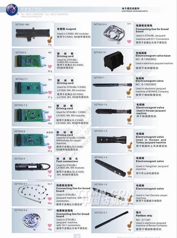超誠電子科技有限公司在產(chǎn)品開發(fā)領(lǐng)域:成功研發(fā)出提花機(jī)電磁鐵、抬緯電磁鐵、電子多臂機(jī)電磁鐵、儲(chǔ)緯器電磁針、接近開關(guān)、緯紗傳感器、光電開關(guān)、光電探緯器、固態(tài)繼電器等產(chǎn)品,部分產(chǎn)品獲得了國際UL認(rèn)證、CE認(rèn)證等,受到了國部委的多次嘉獎(jiǎng)。特別是本公司的高頻率提花機(jī)電磁鐵(SZT-003)、電子多臂機(jī)電磁棒(SZT-001-20)、節(jié)能型提花機(jī)組件(M5)、新型氣閥電磁鐵(TAU-2536),成為了國家商新技術(shù)產(chǎn)品,并通過了上海市高新技術(shù)成果轉(zhuǎn)化,得到了國家重點(diǎn)產(chǎn)品保護(hù),本公司也被確認(rèn)為全國質(zhì)量、信譽(yù)雙保障示范企業(yè),中國質(zhì)量誠信委員會(huì)AAA級(jí)質(zhì)量誠信會(huì)員,中國質(zhì)量誠信促進(jìn)會(huì)質(zhì)量誠信消費(fèi)者(用戶)信得過單位。