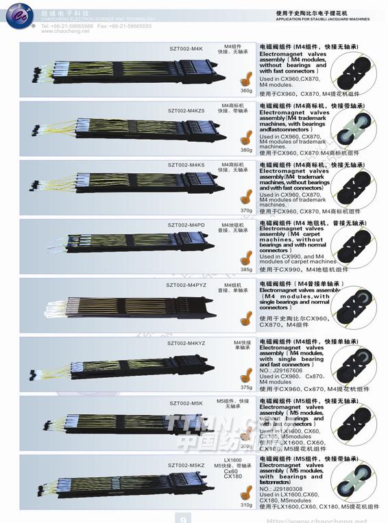 超誠電子科技有限公司在產品開發領域:成功研發出提花機電磁鐵、抬緯電磁鐵、電子多臂機電磁鐵、儲緯器電磁針、接近開關、緯紗傳感器、光電開關、光電探緯器、固態繼電器等產品,部分產品獲得了國際UL認證、CE認證等,受到了國部委的多次嘉獎。特別是本公司的高頻率提花機電磁鐵(SZT-003)、電子多臂機電磁棒(SZT-001-20)、節能型提花機組件(M5)、新型氣閥電磁鐵(TAU-2536),成為了國家商新技術產品,并通過了上海市高新技術成果轉化,得到了國家重點產品保護,本公司也被確認為全國質量、信譽雙保障示范企業,中國質量誠信委員會AAA級質量誠信會員,中國質量誠信促進會質量誠信消費者(用戶)信得過單位。