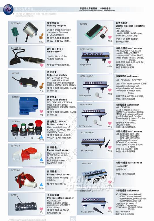 超誠電子科技有限公司在產(chǎn)品開發(fā)領(lǐng)域:成功研發(fā)出提花機(jī)電磁鐵、抬緯電磁鐵、電子多臂機(jī)電磁鐵、儲緯器電磁針、接近開關(guān)、緯紗傳感器、光電開關(guān)、光電探緯器、固態(tài)繼電器等產(chǎn)品,部分產(chǎn)品獲得了國際UL認(rèn)證、CE認(rèn)證等,受到了國部委的多次嘉獎。特別是本公司的高頻率提花機(jī)電磁鐵(SZT-003)、電子多臂機(jī)電磁棒(SZT-001-20)、節(jié)能型提花機(jī)組件(M5)、新型氣閥電磁鐵(TAU-2536),成為了國家商新技術(shù)產(chǎn)品,并通過了上海市高新技術(shù)成果轉(zhuǎn)化,得到了國家重點(diǎn)產(chǎn)品保護(hù),本公司也被確認(rèn)為全國質(zhì)量、信譽(yù)雙保障示范企業(yè),中國質(zhì)量誠信委員會AAA級質(zhì)量誠信會員,中國質(zhì)量誠信促進(jìn)會質(zhì)量誠信消費(fèi)者(用戶)信得過單位。