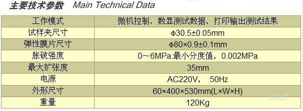 用于各種紡織品、非織布、皮革等材料,在經緯及各個方向同時受力(彈性膜片法)時,擴張力和擴張度的性能測定。