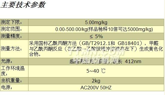 用于測(cè)定各種紡織品中甲醛的含量。