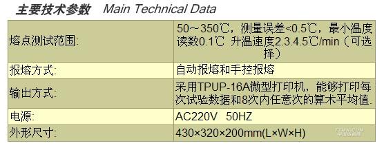 用于測試化纖、聚酯切片、藥粉等物體的熔點(深色不透光物體除外),通過儀器檢測,分析物體在加熱過程中的升溫曲線和光量變化曲線,自動判斷確定熔點,也可通過顯微鏡目測判斷確定熔點。