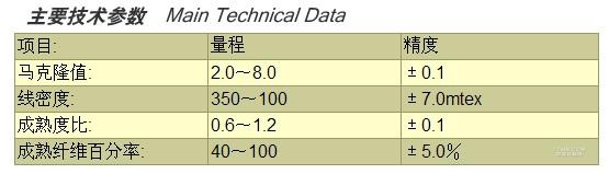 兩次壓縮氣流法棉纖維細度/成熟度儀適用于測定棉纖維的馬克隆值、線密度(公制支數(shù))和成熟度(包括成熟度比、成熟纖維百分率,并可使用經(jīng)驗公式換算成成熟系數(shù))等指標(biāo)。