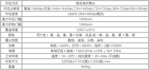 SUN FLOWER-180Bt 導帶式數碼噴射印花機技術參數
