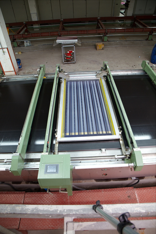 針對寬幅大花位的印花,為防止升版時造成織物脫離臺面,可設定網版兩端的不同延時升降時間。整機外表由不銹鋼版保護,可防印花漿料化學腐蝕,并易于清洗和維修。