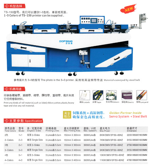 TS一150型號(hào),我們可以提供1-5色機(jī),單面或雙面。機(jī)器用途: