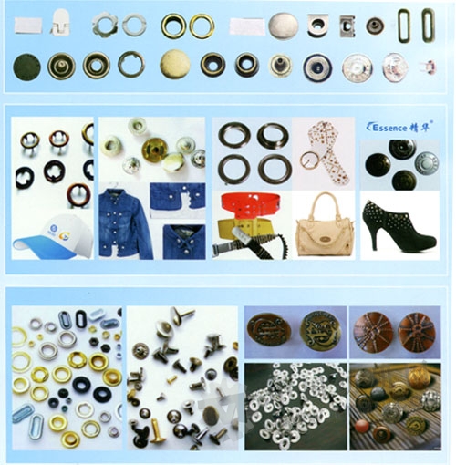 用于服裝、鞋帽、玩具、皮革、工藝品等制品上裝訂四合扣、大白扣、鉚扣等各種工藝品