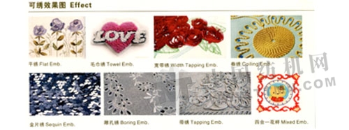 ★隔頭選擇功能:能自動轉(zhuǎn)換鏈?zhǔn)綑C(jī)頭和平繡機(jī)頭,使原來費(fèi)時(shí)的精巧混合刺繡簡單化。