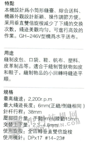 GH-246 GH-246V 簡型單針平縫綜合送布縫紉機(jī)
