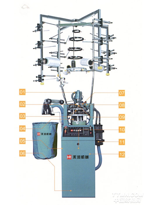 “禾潤”牌HRl2P74”480N/4”400N型絲襪機(jī)是由電腦控制的具有四路標(biāo)志系統(tǒng)的單針筒平紋絲襪機(jī)。該機(jī)采用獨立抽風(fēng)機(jī)或中央抽風(fēng)系統(tǒng)進(jìn)行織物牽拉,機(jī)器配備抗扭裝置。針筒轉(zhuǎn)動采用伺服電機(jī)直接驅(qū)動以減少轉(zhuǎn)動鏈及傳動誤差,由步進(jìn)馬達(dá)控制針筒升降,可產(chǎn)生不同疏密、加壓潤滑油用以潤滑針織、生克和選針片。電腦控制襪子的制作全過程、款式和品質(zhì)。該機(jī)可使用合成纖維、人造纖維以及裸氨綸和包覆紗等原料生產(chǎn)絲襪產(chǎn)品,4”400N生產(chǎn)連褲襪、長絲襪、短絲襪、九分褲襪等多種絲襪產(chǎn)品。其中4”480N主要生產(chǎn)高密型長統(tǒng)襪、連褲襪。