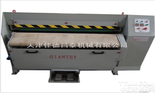 天津佳德昌泰機械有限公司的產品GHS-130-S型拉軟機可在羊皮生產流程中用來對皮張進行伸展和拉軟作業,是皮毛一體加工中的重要設備。本品屬標準機型配置,有一個刷帶和一組導角可調的刀片組成的工作輥,若裝上磨石(stone)即可進行磨革。工作傳送帶是用牛皮制作的,由液壓驅動。皮張在傳送帶上的壓力,接觸面積,伸展量以及工作速度均可隨意調節。