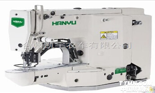 悍宇1850適用于各種服裝(如西服、牛仔褲、工作服、時(shí)裝、大衣等)的大小套結(jié)、紐孔加固、褲帶環(huán)套結(jié)、釘高標(biāo)等。采用了簡單、可靠的雙V型皮帶減速機(jī)構(gòu),提高了可靠性和使用壽命。大送布凸輪的設(shè)計(jì)減少了拐點(diǎn)處的沖擊,通過變換送布凸輪可縫制出各種線跡。