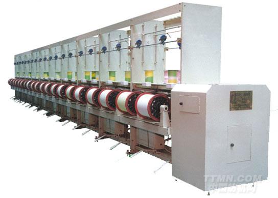 本機(jī)是化纖倍捻機(jī)的后道設(shè)備,把倍捻機(jī)上的卷取筒子倒成大卷裝,與無梭織機(jī)配套以減少停機(jī)時(shí)間,