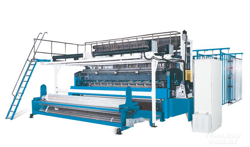 該機由一個緯紗襯入裝置和一臺經編機組成,紗線由引緯小車帶動襯入兩邊的夾緯器,經由鏈條傳送到經編機編織區通過一定的工藝編織成布,襯緯系統最多可以襯入24根緯紗,整個系統全電腦控制,由伺服電機驅動,保證襯入的緯紗定位準確,編織后的布由電子牽拉卷取機構收卷