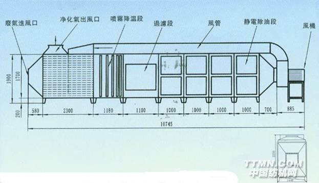 我們以新開發(fā)特種不織布置放“初級過濾及降溫區(qū)”中,將循環(huán)熱氣中部份的油氣,染料,棉(毛)絮加以吸附,在此,我們也配置噴霧加濕降溫裝置,配合靜電集油區(qū)工作。