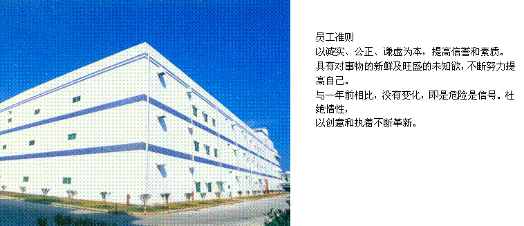 我們要建設(shè)這樣一個(gè)公司,即在開發(fā)、生產(chǎn)、銷售等全過(guò)程均注重客戶的滿意程度,我們每一位員工都為進(jìn)一步提高客戶的滿意度而感到喜悅。在汽車、家電、住宅設(shè)施,OA/FA等世界各個(gè)領(lǐng)域中,把握客戶的需求,為了快速與之對(duì)應(yīng),從原料、加工到銷售的流水生產(chǎn)體制的基礎(chǔ)上,實(shí)行開發(fā)、營(yíng)業(yè)一體化的組織體系。