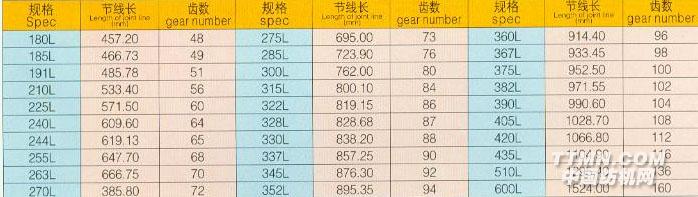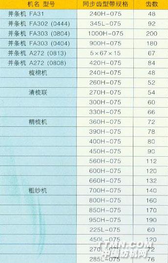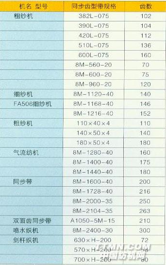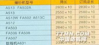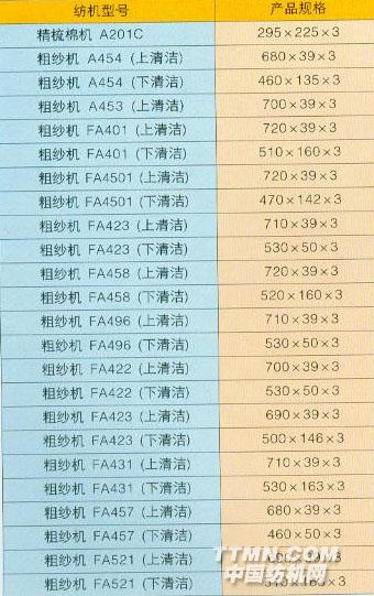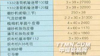 棉紡細(xì)紗機錠帶規(guī)格
