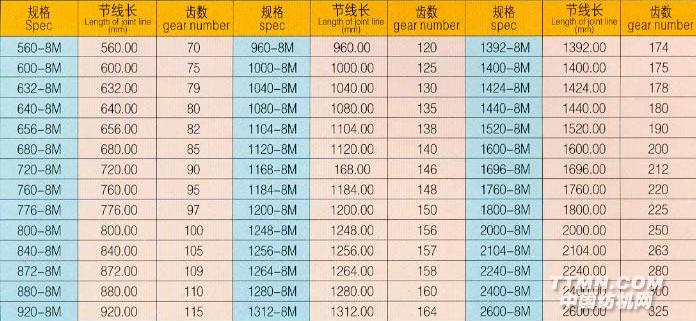 HTD—8M型(節(jié)距=8.00mm)