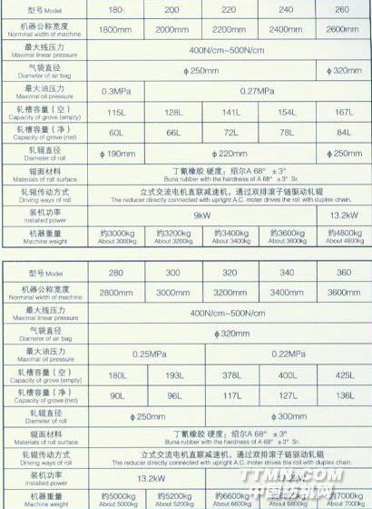 四、輥徑φ300系列 門幅3200mm 3400mm 3600mm