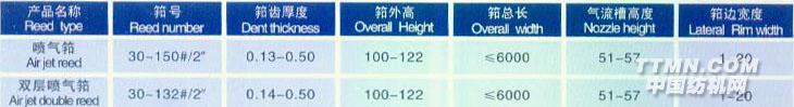 采用進(jìn)口鋁合金筘梁和優(yōu)質(zhì)筘片、高強(qiáng)度粘合劑制作(噴水筘選用優(yōu)質(zhì)焊錫、全不銹鋼材料制作)