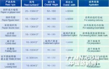 噴氣織機(jī)鋼筘規(guī)格