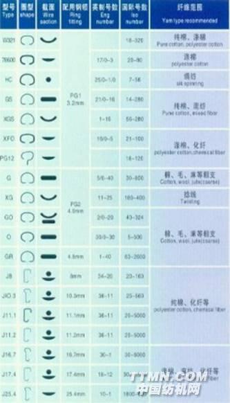 特別提示:由于SP鋼絲圈表面良好的潤(rùn)滑性和低摩擦系數(shù),紡紗張力亦隨之降低,因此,選用SP鋼絲圈時(shí)、通常加大一個(gè)號(hào)數(shù)。