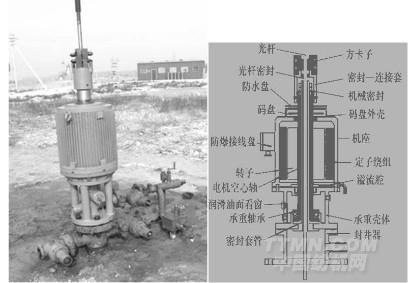 圖1永磁同步電機(jī)直驅(qū)螺桿泵外觀圖及結(jié)構(gòu)圖