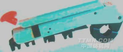 搖架鎖緊機構采用四連桿機構,自鎖性強,加卸壓方便,適應紡織女工操作,且鎖緊可靠,經多次重復卸壓,其搖架安裝高度仍能保持不變。