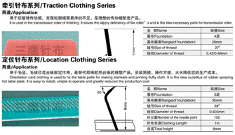 三鷹針布擁有成套、完整的生產設備,技術力量雄厚,生產工藝先進。通過ISO9001:2000國際質量管理體系認證。主要生產彈性針布(起毛用、梳毛用、輔助用)系列產品,產品銷往世界各地。