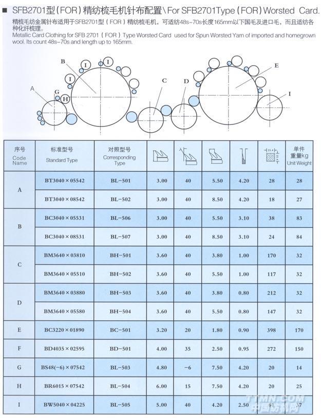 SFB2701型(FOR)精紡梳毛機自鎖針布配置