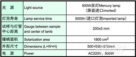 用于各類紡織品在汞燈模擬太陽光照下加速老化的試驗。